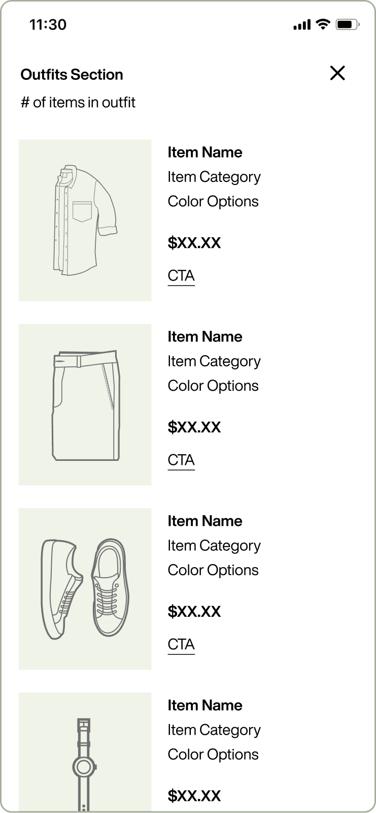 When users clicked into the outfits they were confused to the layout and wanted a way to look at the items first.
